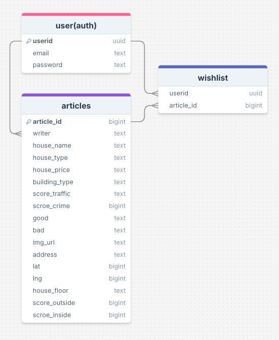 - 관심 리스트를 불러오기 위해 찜한 집 정보를 저장하는 테이블을 확인하고, 해당 데이터를 조회하는 함수를 작성합니다.